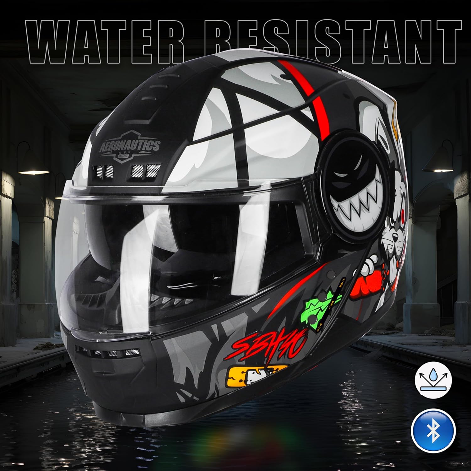 • ISI Certified Full Face Graphic Helmet. High Impact Resistant Thermoplastic shell