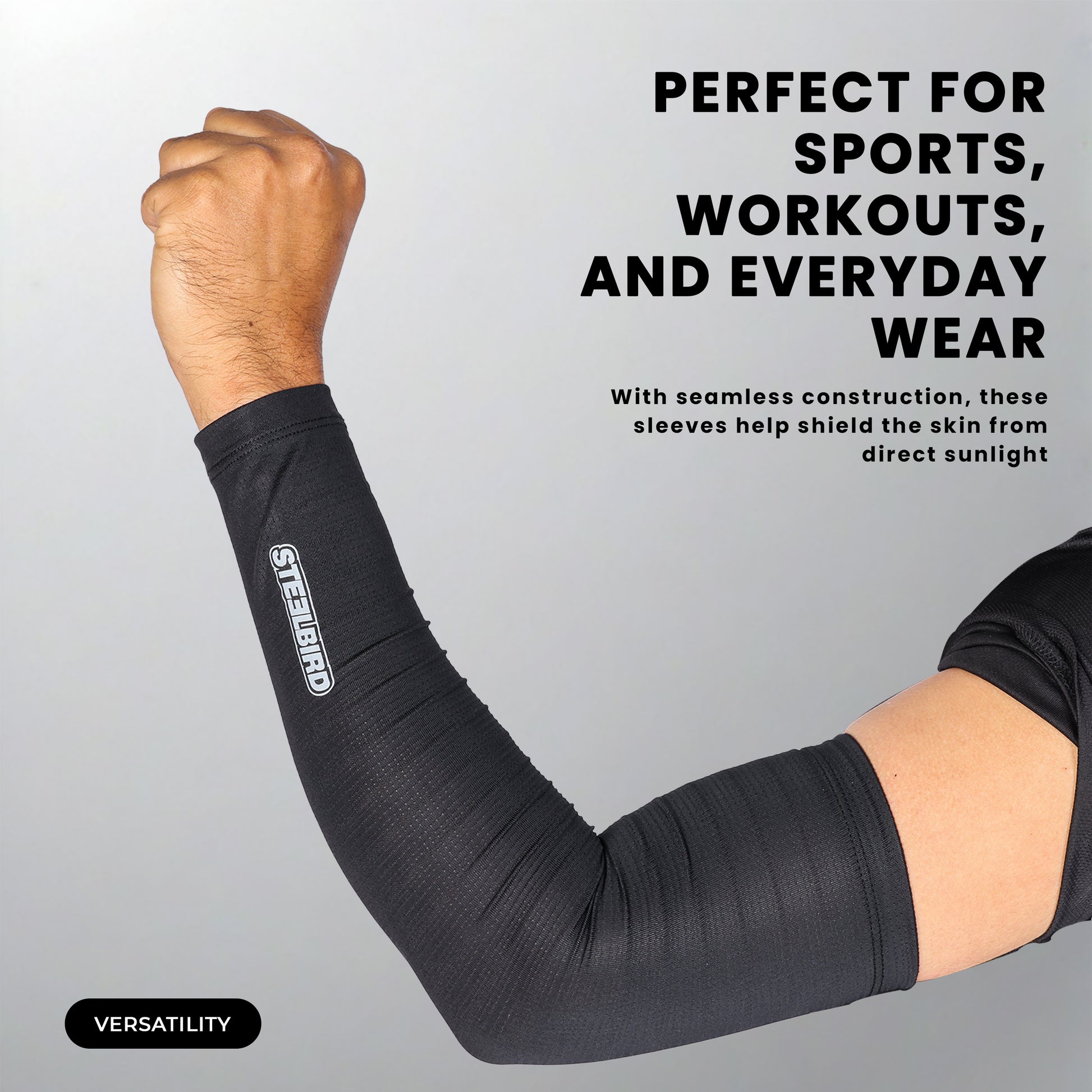 Steelbird Sarchu 1.0 Arm Sleeves Black Unisex for Sports, Running, Cricket, Bike Riding, Cycling, Basketball & Breathable (Sold as a Pair)